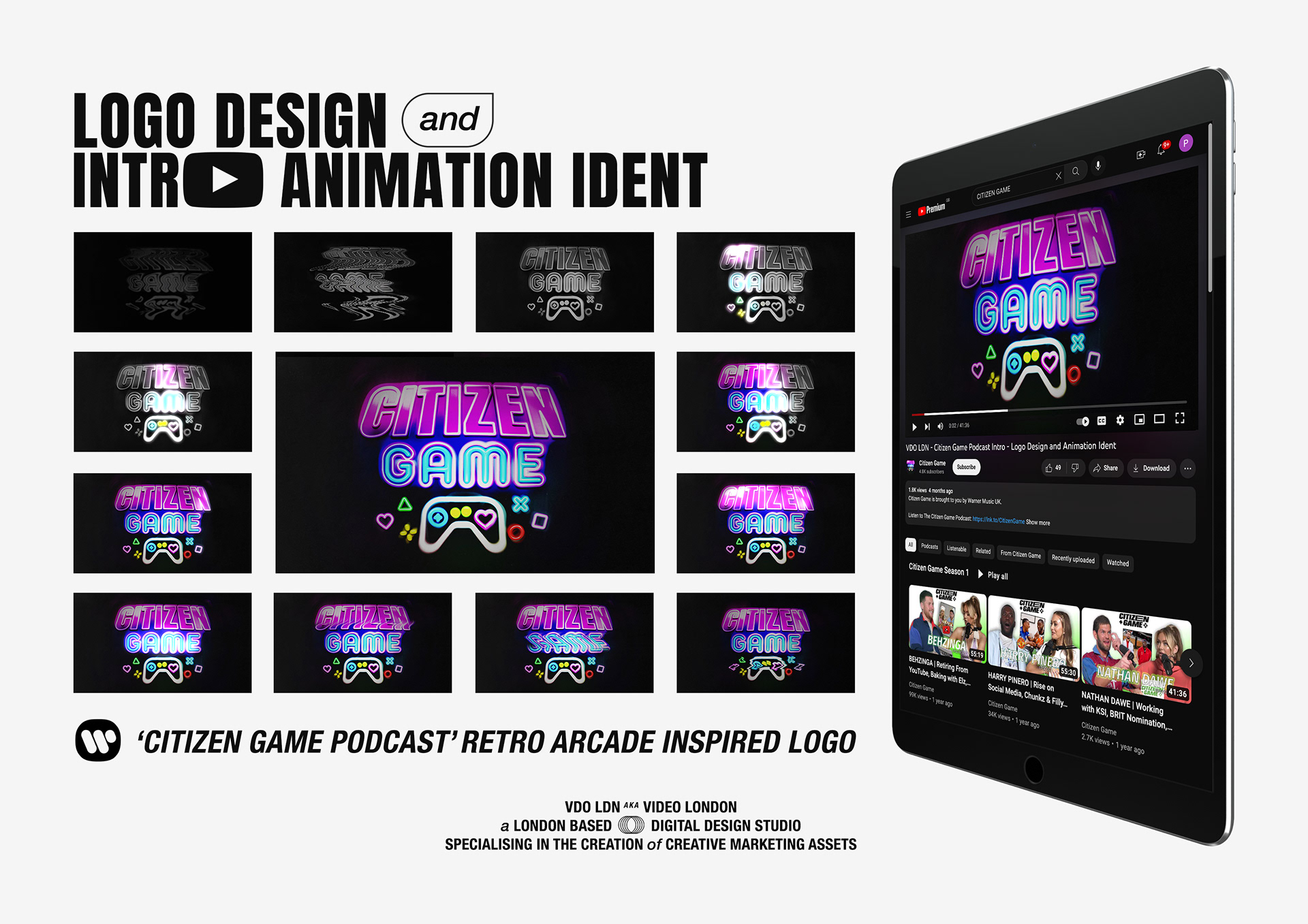 Logo creation and animated logo ident opener created for the Citizen Game podcast.